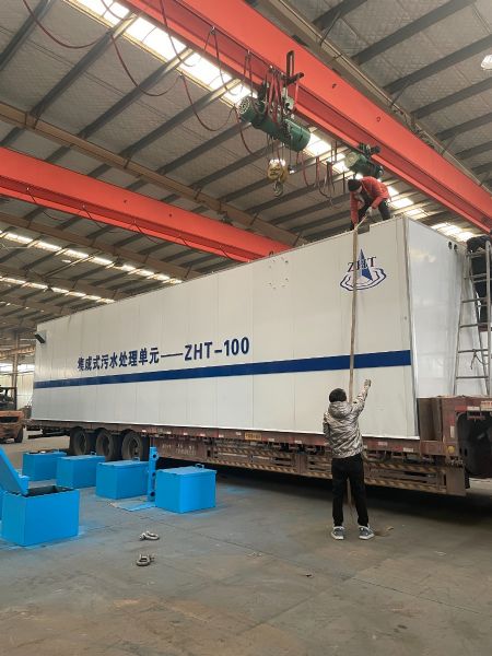 这是一台集成式的MBR膜一体化污水处理设备,该设备放于地上,设备间与设备为一体,省去了客户在单独建设备间的烦恼,膜生物反应器是结合了膜分离技术和传统的污泥法的一种,高xiao污水处理技术,由于膜的过滤