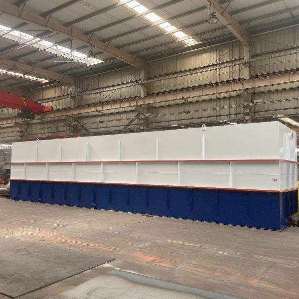 集成式的一体化生活污水处理设备已经做好一批了,前几天发了好几车,这是第二批,因为是放在地上,所以说在设备的外部,我们又做了一层保温板材,如果您的设备也必须放于地上,而且还得再单独建设备间,我建议您就用