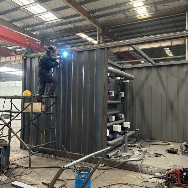 这组设备一共有8套,现在正在制作的是zui后两套了,即将发往四川,处理的是乡镇上的污水处理站的生活污水,单套的处理量为每天500立方,我们这一组设备采用的是滤池工艺,以及硫自养深度脱氮技术,大幅度降低
