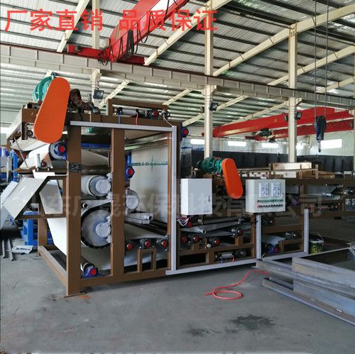 污泥浓缩机是通过两条滤带缠绕在一系列顺序排列、大小不等的辊轮上,利用滤带间的挤压和剪切作用,来脱除料浆中水分的一种压滤设备,具有着能连续作业、自动化程度高、节能、使用维护方便等优点,是一种进行污泥脱水减量化处理的理想设备。